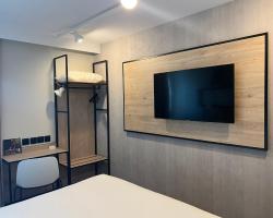 LâHĂŽtel IBIS AngoulĂȘme Nord vous accueille Ă Champniers, Ă seulement 5 minutes de route du centre-ville dâAngoulĂȘme, dans le dĂ©partement de la Charente. Cet Ă©tablissement propose un parking gratuit et des hĂ©bergements climatisĂ©s dotĂ©s dâune connexion Wi-Fi gratuite. Les chambres disposent d'une salle de bains privative et d'une tĂ©lĂ©vision Ă Ă©cran plat. Trois chambres sont Ă©quipĂ©es d'installations adaptĂ©es aux personnes Ă mobilitĂ© rĂ©duite. Chaque matin, le petit-dĂ©jeuner buffet comprend des mets sucrĂ©s et salĂ©s, comme des Ćufs, de la salade de fruits, des yaourts et des jus de fruits. Des viennoiseries cuites sur place, des madeleines fraĂźches ainsi quâune boisson chaude et un fruit Ă emporter sont Ă©galement disponibles. En dehors des horaires habituels, un petit-dĂ©jeuner plus lĂ©ger est proposĂ© Ă partir de 4h00. Vous pourrez dĂ©guster une cuisine rĂ©gionale dans le restaurant, La Boucherie, situĂ© Ă 50 mĂštres de lâhĂŽtel principal. Vous bĂ©nĂ©ficierez Ă©galement dâun bar et de journaux gratuits Ă la rĂ©ception ouverte 24h/24. Lors de votre sĂ©jour, vous pourrez profiter de salles de rĂ©union. Vous sĂ©journerez Ă 7 km de lâaĂ©roport de Brie-Champniers. Des bornes de recharge pour vĂ©hicules Ă©lectriques sont disponibles sur place.