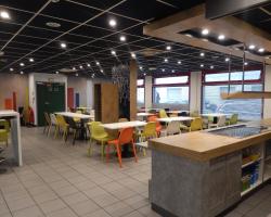 L'ibis budget Paris Porte d'Italie Est propose des hĂ©bergements climatisĂ©s dotĂ©s d'une connexion Wi-Fi gratuite au sud de Paris, Ă 350 mĂštres de la station de mĂ©tro du Kremlin-BicĂȘtre. Sa rĂ©ception est ouverte 24h/24 et 7j/7. Vous pourrez profiter d'un parking privĂ© souterrain moyennant des frais supplĂ©mentaires et sous rĂ©serve de disponibilitĂ© au moment de l'enregistrement. Toutes les chambres disposent d'une tĂ©lĂ©vision par cĂąble. Un petit-dĂ©jeuner continental comprenant du cafĂ©, du thĂ©, des viennoiseries, des cĂ©rĂ©ales, de la brioche, des yaourts et de la salade de fruits est servi tous les matins. L'arrĂȘt de tramway le plus proche, desservi par la ligne T3, est Ă 8 minutes de marche et vous permettra de rejoindre directement le parc des expositions Paris Expo Porte de Versailles. La station de mĂ©tro Porte d'Italie est Ă©galement accessible en 8 minutes Ă pied. L'ibis budget Paris Porte d'Italie Est se trouve Ă 300 mĂštres du stade CharlĂ©ty et du centre commercial OkabĂ©. La halle Georges-Carpentier est, quant Ă elle, situĂ©e Ă 10 minutes de marche.