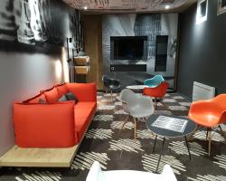 L'hôtel ibis Saint-Die est situé dans le centre de Saint-Dié-des-Vosges, sur les rives de la Meurthe. Il possède des chambres climatisées desservies par un ascenseur et met une connexion Wi-Fi gratuitement à votre disposition. Vous pourrez stationner votre moto ou votre vélo dans un garage fermé, moyennant des frais supplémentaires. Un petit-déjeuner buffet, composé de plats sucrés et salés, comme des œufs, de la salade de fruits, des yaourts et des jus, est servi chaque matin. Des viennoiseries cuites sur place, des madeleines fraîches ainsi qu'une boisson chaude et un fruit à emporter sont aussi proposés. Un petit-déjeuner plus léger est servi à partir de 4h00. L'hôtel se trouve à 500 mètres de la tour de la Liberté, de la cathédrale de Saint-Dié et de la gare. La nationale N50 est à 2 km de l'hôtel. Enfin, vous pourrez faire du ski, des randonnées et d'autres activités de plein air dans les montagnes des Vosges voisines.