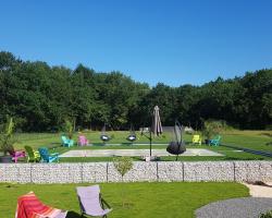 Doté d'une piscine avec vue et vue sur la piscine, l'Alolival est un Bed & Breakfast durable situé à Sablonceaux, à 28 km de la gare de Saintes. Cet hébergement climatisé se trouve à 14 km de la gare de Royan. Cette chambre d'hôtes met gratuitement à votre disposition une connexion Wi-Fi et un parking privé. Elle est accessible aux personnes à mobilité réduite. Tous les logements disposent d'une terrasse, d'un coin repas et d'une télévision à écran plat. Leur salle de bains privative est pourvue d'une douche à l'italienne et d'un sèche-cheveux. Un réfrigérateur, des plaques de cuisson, des ustensiles de cuisine et une machine à café sont également fournis. Le linge de lit et les serviettes de toilette sont fournis. Vous trouverez un bar sur place et, en été, vous pourrez utiliser le barbecue. Ce Bed & Breakfast possède un casino, des équipements de jeux en plein air et un jardin. L'église Notre-Dame et le centre des congrès se trouvent à 16 km. L'aéroport de La Rochelle-Île de Ré, le plus proche, est à 70 km.