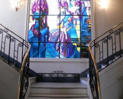 Le vitrail représente l'impératrice Eugénie, qui serait restée dans ce manoir privé. Le vitrail et l'escalier, de style Art déco, ont été classés monument historique, en septembre 2021. Occupant un bâtiment du XIXe siècle, l'établissement Chambre Eugénie est situé à Saint-Cloud. Un parking privé et une connexion Wi-Fi sont disponibles gratuitement sur place. Le centre culturel La Seine Musicale se trouve à 3,2 km. Située au deuxième étage et accessible par un escalier, cette chambre offre une vue sur le jardin. Elle comprend également une télévision par satellite à écran plat. Vous pourrez pratiquer diverses activités dans les environs, telles que le golf, le vélo et la randonnée. L'aéroport de Paris-Orly, le plus proche, est à 17 km.