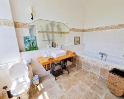 Situé à Sauveterre, l'établissement Chambres du Pont de la Légende est un Bed & Breakfast historique doté d'une connexion Wi-Fi gratuite, d'installations de sports nautiques et d'un jardin. Il propose une bagagerie et une aire de pique-nique. Il propose des chambres familiales et une cheminée extérieure. Certains logements comprennent une terrasse et/ou un balcon avec vue sur la riviÚre et un coin repas extérieur. Certains logements sont équipés d'une bouilloire et de vin ou de champagne. Le petit-déjeuner continental se compose d'une sélection de plats, notamment de viennoiseries fraßches, de fruits et de jus de fruits. Vous pourrez vous détendre dans le salon de l'établissement et des paniers-repas sont également disponibles. Des cours de yoga sont dispensés sur place. Si vous voyagez avec des enfants, les Chambres du Pont de la Légende disposent d'une aire de jeux intérieure, d'équipements de jeux extérieurs et d'une barriÚre de sécurité pour bébé. Un service de location de vélos est assuré sur place. La région est prisée pour pratiquer le vélo, la randonnée et la randonnée. Vous séjournerez à 46 km de la gare de Dax et à 45 km de la cathédrale Sainte-Marie. L'aéroport le plus proche, celui de Biarritz-Pays basque, est situé à 73 km.