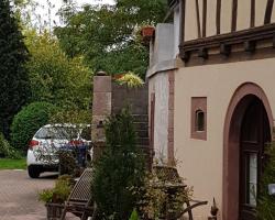 GITE AU PETIT RUISSEAU-Etage et combles-maison alsacienne 4 personnes 4 nuitées minimum est une maison de vacances durable située à Langensoultzbach, où vous pourrez profiter de son jardin et de ses vélos gratuits. Vous bénéficierez d'un accès à un balcon et d'un parking privé gratuit. Cette maison de vacances dispose d'une cheminée extérieure et d'un bain à remous. Offrant une vue sur le jardin, cette maison de vacances spacieuse dispose d'une terrasse, de 2 chambres, de 2 salons, d'une télévision à écran plat, d'une cuisine équipée avec un lave-vaisselle et un four, ainsi que d'une salle de bains avec un jacuzzi. Le parquet, la cheminée et l'ambiance paisible ajoutent à l'ambiance de la chambre. Cette maison de vacances est non-fumeurs et adaptée aux personnes souffrant d'allergies. Pour les moments où vous préférez ne pas dîner dehors, vous pouvez choisir de cuisiner sur le barbecue. Si vous voyagez avec des enfants, la maison de vacances dispose d'équipements de jeux extérieurs et d'une barrière de sécurité pour bébé. Vous pourrez profiter d'un salon commun sur place et faire du vélo et de la randonnée dans les environs. L'aéroport de Karlsruhe/Baden-Baden, le plus proche, est à 53 km.