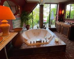 Située dans le jardin, la maison de charme Toute Une Histoire possède une terrasse et un jardin. La Seine est à 400 mètres. Cette maison d'hôtes est située à Veneux-les-Sablons, à 10 minutes de route du château de Fontainebleau. Cette maison d'hôtes propose deux chambres différentes, la chambre Eugénie avec douche italienne, et la chambre Joséphine avec douche et jacuzzi privé. La chambre Eugénie est décorée dans un style artistique et dispose d'un dressing. La salle de bains privative est située dans le couloir et dispose d'une douche à l'italienne avec de grands carreaux de verre pour laisser entrer la lumière. les toilettes sont privées et séparées. Au rez-de-chaussée de la maison, vous trouverez un salon commun avec une télévision par satellite à écran plat. Un parking privé gratuit est disponible sur place et l'établissement se trouve à 30 minutes en voiture du célèbre musée Maison Jean Cocteau du XVIIIe siècle. L'association Le Cyclop, à 30 km, est un musée proposant des œuvres de sculpteurs célèbres tels que Jean Tinguely. Des visites culturelles dans la région peuvent être organisées par le propriétaire, moyennant des frais supplémentaires. Cette chambre lit king-size dispose d'une douche italienne.
