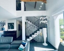 Offrant une vue sur le jardin, la Villa Metz / Amnéville 200m2 propose un hébergement avec un balcon et une machine à café, à environ 18 km du Centre Pompidou-Metz. Cette villa dispose d'une terrasse et d'une connexion Wi-Fi gratuite. La villa comprend 5 chambres, 2 salles de bains, du linge de lit, des serviettes, une télévision par satellite à écran plat, un coin repas, une cuisine entièrement équipée et une terrasse avec vue sur la ville. Pour plus de commodité, l'établissement peut fournir des serviettes et du linge de lit moyennant des frais supplémentaires. Vous pourrez profiter du jardin ou partir en randonnée dans les environs. Vous séjournerez à 18 km de la gare de Metz et à 20 km du parc des expositions de Metz. L'aéroport de Metz-Nancy-Lorraine, le plus proche, est implanté à 32 km.