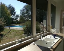 Bénéficiant d'un jardin, d'une piscine privée et d'une vue sur le jardin, la Villa Parenthese est située à Saint-André-de-Cubzac. Il possède une cuisine commune et une aire de jeux pour enfants. Vous bénéficierez gratuitement d'une connexion Wi-Fi et d'un parking privé. Offrant une vue sur la piscine, cette maison de vacances spacieuse dispose d'une terrasse, de 5 chambres, d'un salon, d'une télévision à écran plat, d'une cuisine équipée avec un lave-vaisselle et un four ainsi que de 5 salles de bains pourvues d'une douche à l'italienne. Vous pourrez profiter d'un séjour dans une chambre insonorisée dotée de parquet et d'une cheminée. L'établissement possède un coin repas extérieur. Cette maison de vacances dispose d'une aire de pique-nique et d'un barbecue. Vous séjournerez à 24 km du stade Matmut Atlantique et à 25 km du parc des expositions Bordeaux Expo. L'aéroport de Bordeaux-Mérignac, le plus proche, est à 35 km.